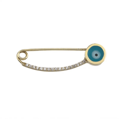 Altın Çocuk Takıları modellerinden Altın Turkuaz Göz Taşlı İğne ürünümüz,