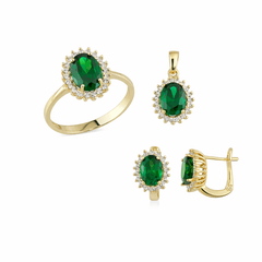 Taşlı Üçlü Set Takım Modelleri modellerinden Altın Üçlü Takım Yeşil Yuvarlak ürünümüz, 7.50 gr ağırlığında 14 Ayar Altın.