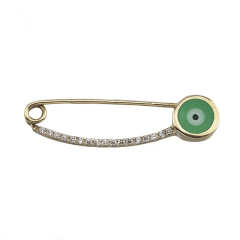 Altın Çocuk Takıları modellerinden Altın Yeşil Göz Taşlı İğne ürünümüz,