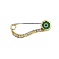 Altın Çocuk Takıları modellerinden Altın Yeşil Göz Taşlı İğne 14k ürünümüz,