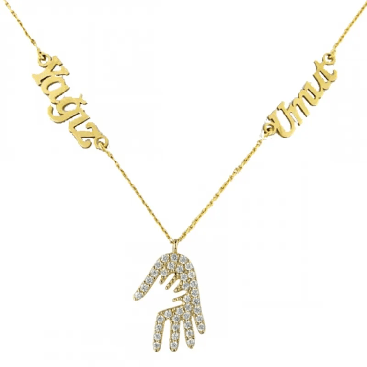 Altın Anneler Günü Hediyeleri modellerinden Anne Bebek Eli İsimli Kolye ürünümüz,