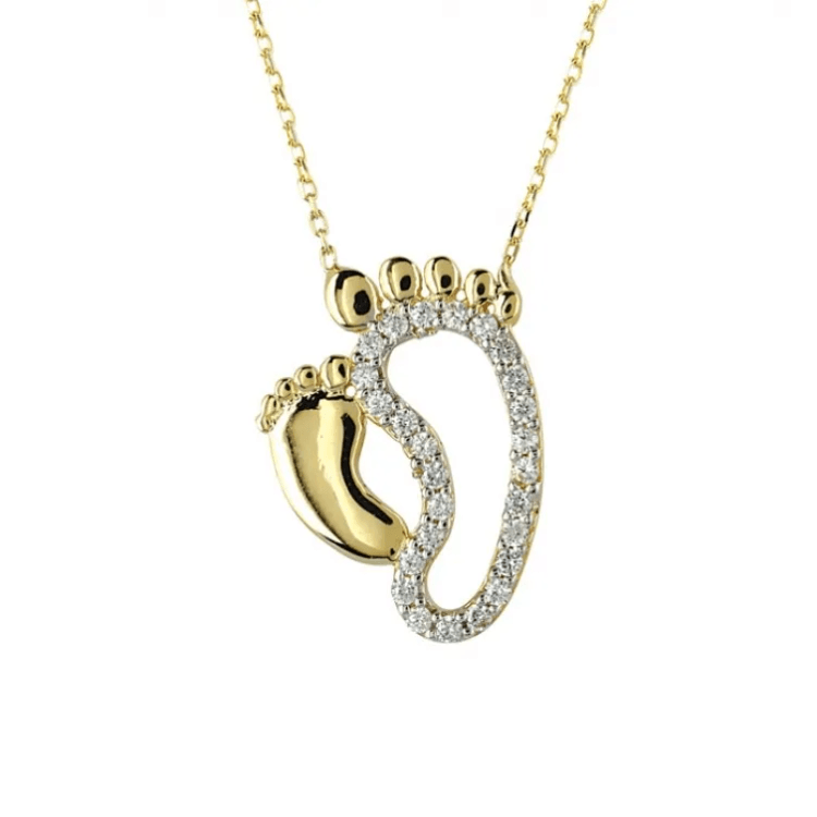 Altın Anneler Günü Hediyeleri modellerinden Anne Çocuk Ayakları Kolye ürünümüz,