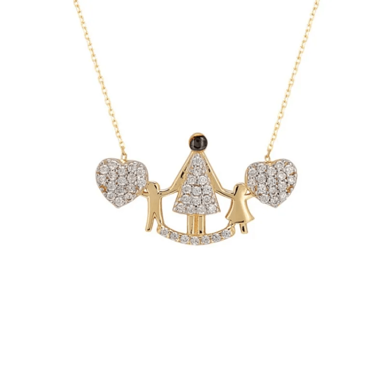 Altın Kolye Modelleri modellerinden Anne Çocuk El ele Altın Kolye ürünümüz,
