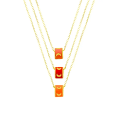 Altın Kolye Modelleri modellerinden Ay Desenli Renkli Taşlı Üçlü Kolye ürünümüz,