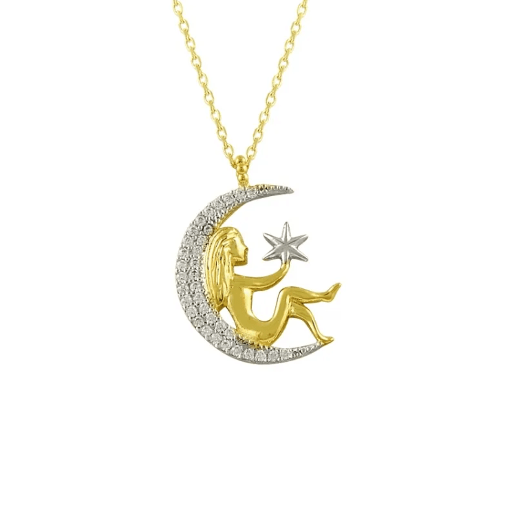 Altın Kolye Modelleri modellerinden Ay İçinde Yıldız Tutan Kız Altın Kolye ürünümüz,
