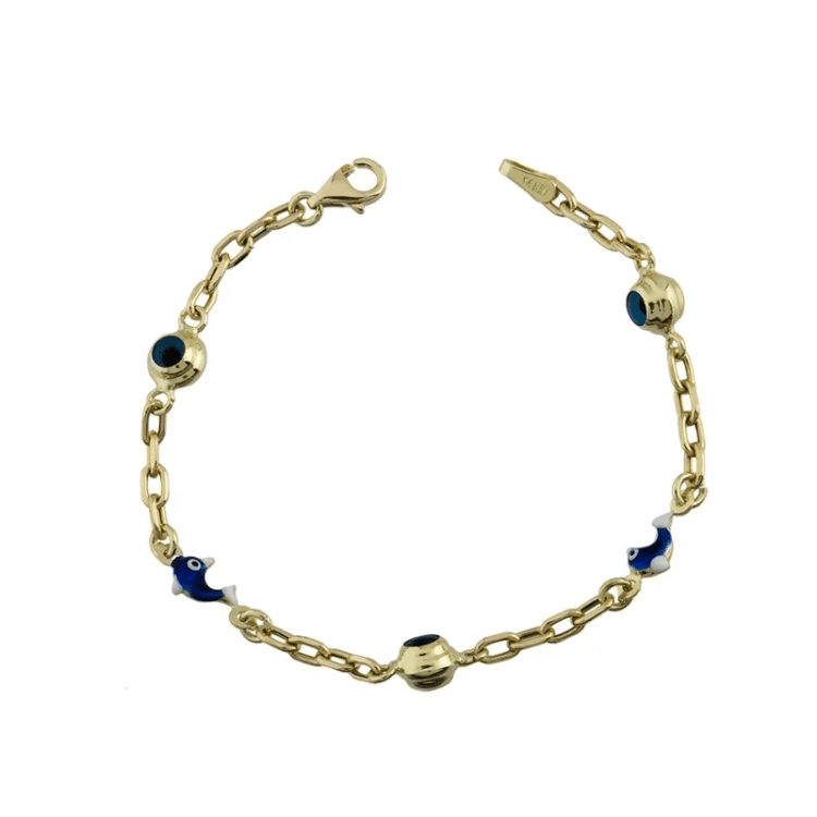 Altın Çocuk Takıları modellerinden Balıklı Göz Boncuklu Bebek Künyesi ürünümüz,