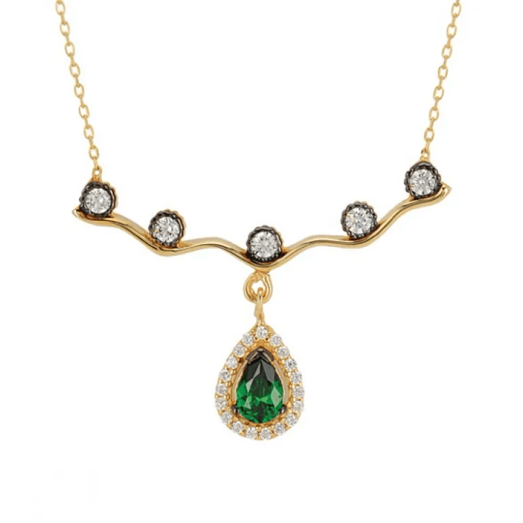 Altın Kolye Modelleri modellerinden Beştaş Altında Yeşil Damla Kolye ürünümüz,