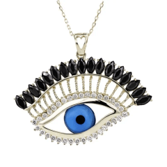 Altın Kolye Modelleri modellerinden Beyaz Kiprikli, Kara Kaşlı Göz Kolye ürünümüz,