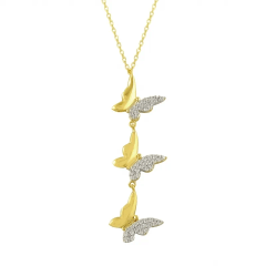 Altın Kolye Modelleri modellerinden Birbirine Tutunan 3 Kelebek Altın Kolye ürünümüz,