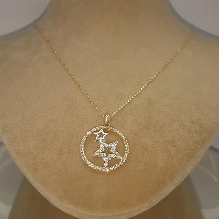 Altın Kolye Modelleri modellerinden Çember İçinde 2 Yıldız Kolye ürünümüz,