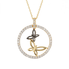 Altın Kolye Modelleri modellerinden Çember İçinde İki Kelebek Kolye ürünümüz,
