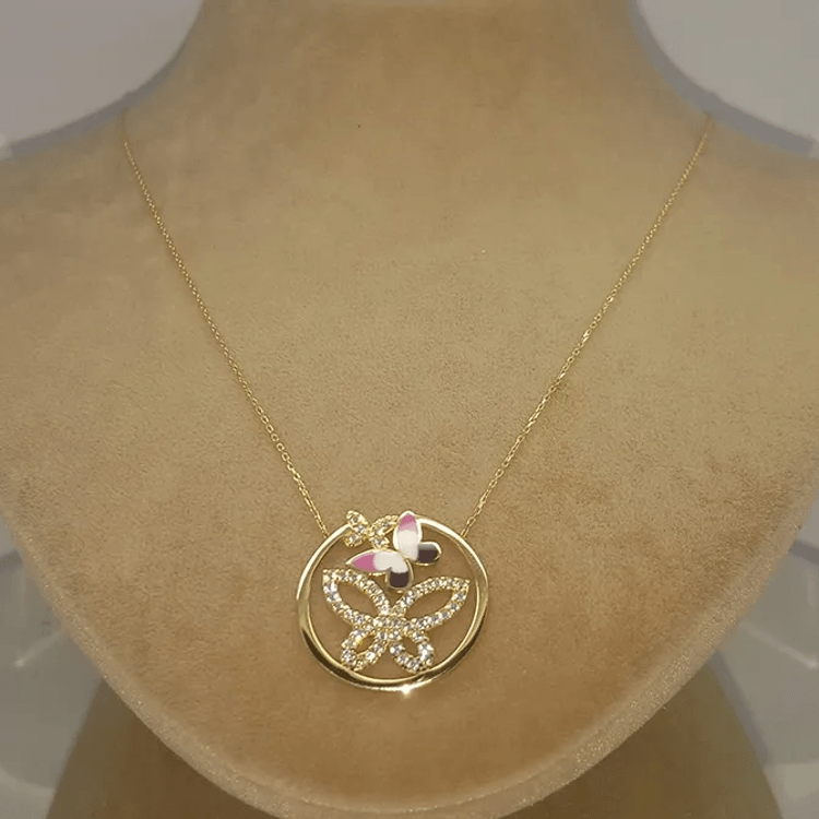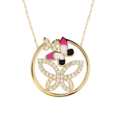 Altın Kolye Modelleri modellerinden Çemberde Kelebekler Altın Kolye ürünümüz,