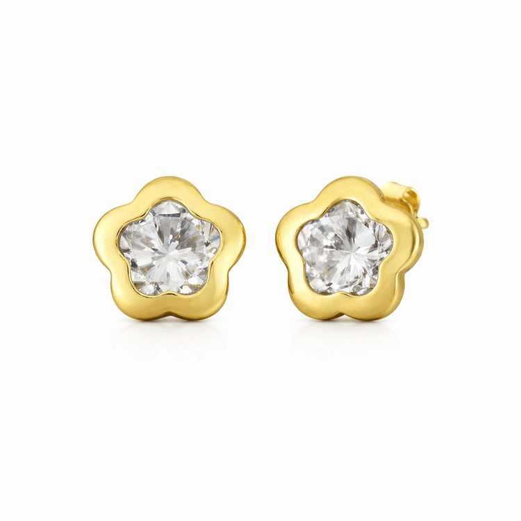 Altın Küpe Modelleri ve Fiyatları modellerinden Çiçek Şekilli Tektaş Küpe 14k ürünümüz, 1.17 gr ağırlığında 14 Ayar Altın.
