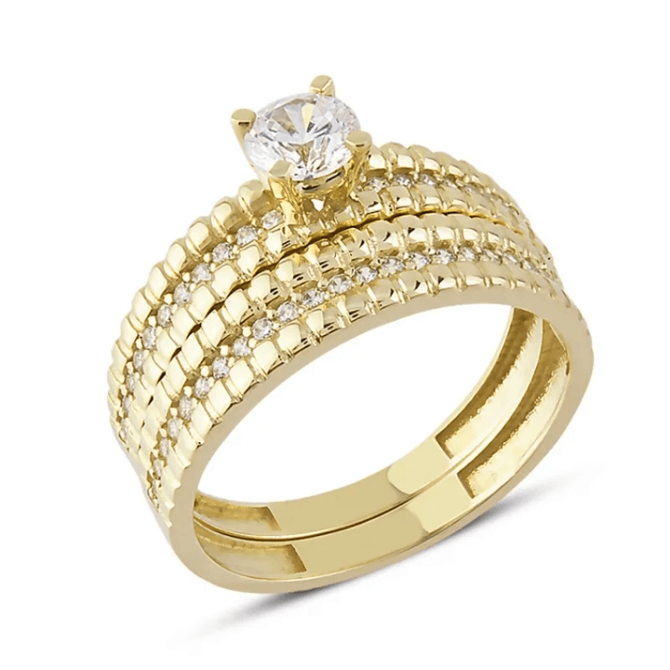 Altın Yüzükler modellerinden Çiftli Sıralı Tektaş Yüzük ürünümüz,