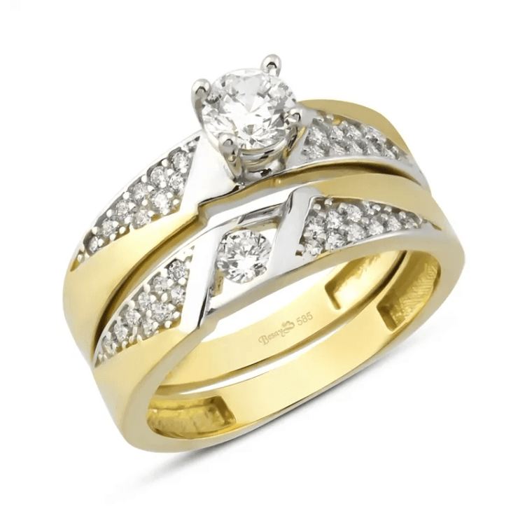 Altın Yüzükler modellerinden Çiftli Üçgen Dekor Yüzük ürünümüz,