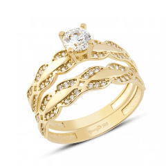 Altın Yüzükler modellerinden Çiftli Yüzük Dalga Dekorlu ürünümüz,