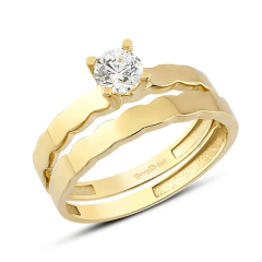 Altın Yüzükler modellerinden Çiftli Yüzük Dalga Dekorlu Sade ürünümüz,