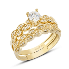 Altın Yüzükler modellerinden Çiftli Yüzük Hasır Dekor ürünümüz,