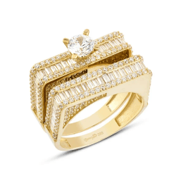 Altın Yüzükler modellerinden Çiftli Yüzük Kare Baget İşlemeli ürünümüz,