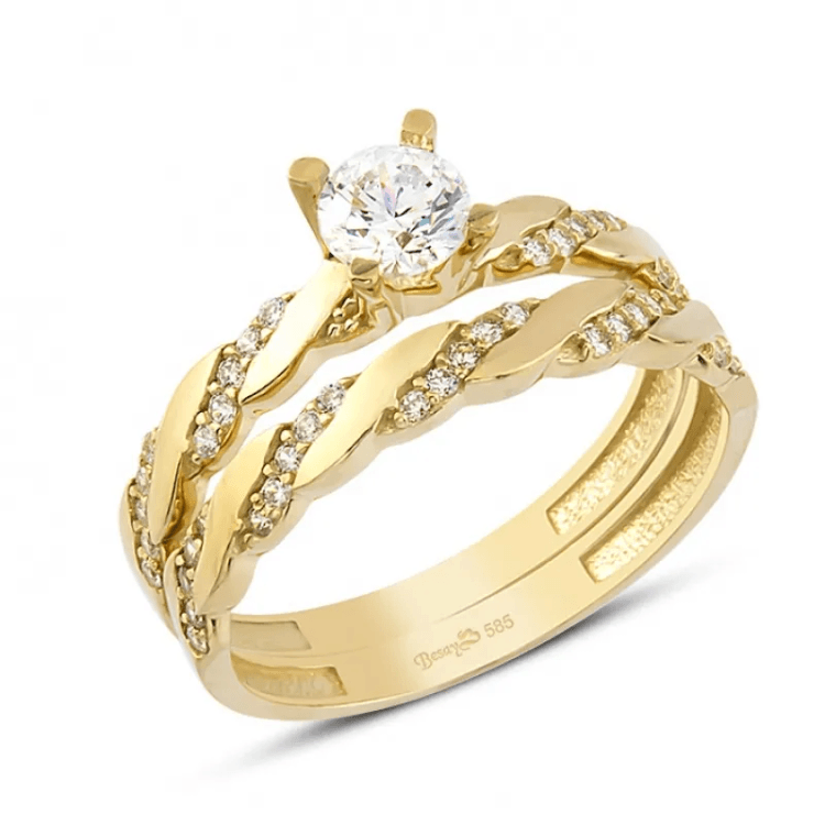 Altın Yüzükler modellerinden Çiftli Yüzük Örgü Dekoorlu ürünümüz,