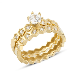 Altın Yüzükler modellerinden Çiftli Yüzük Petek Taşlı ürünümüz,