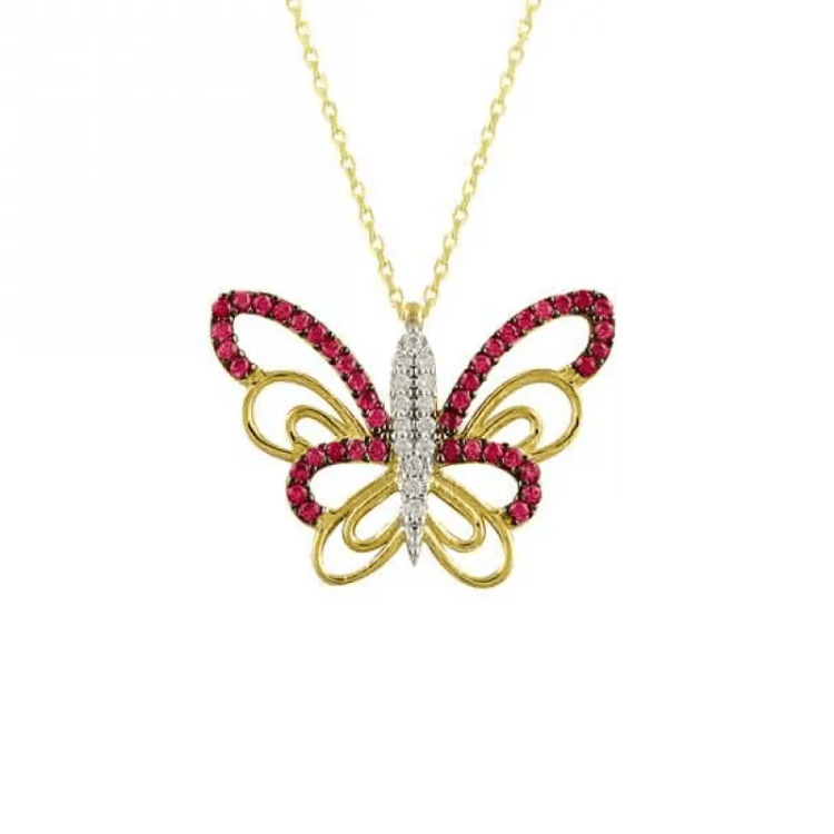 Altın Kolye Modelleri modellerinden Çok Kanatlı Renkli Altın Kolye ürünümüz,