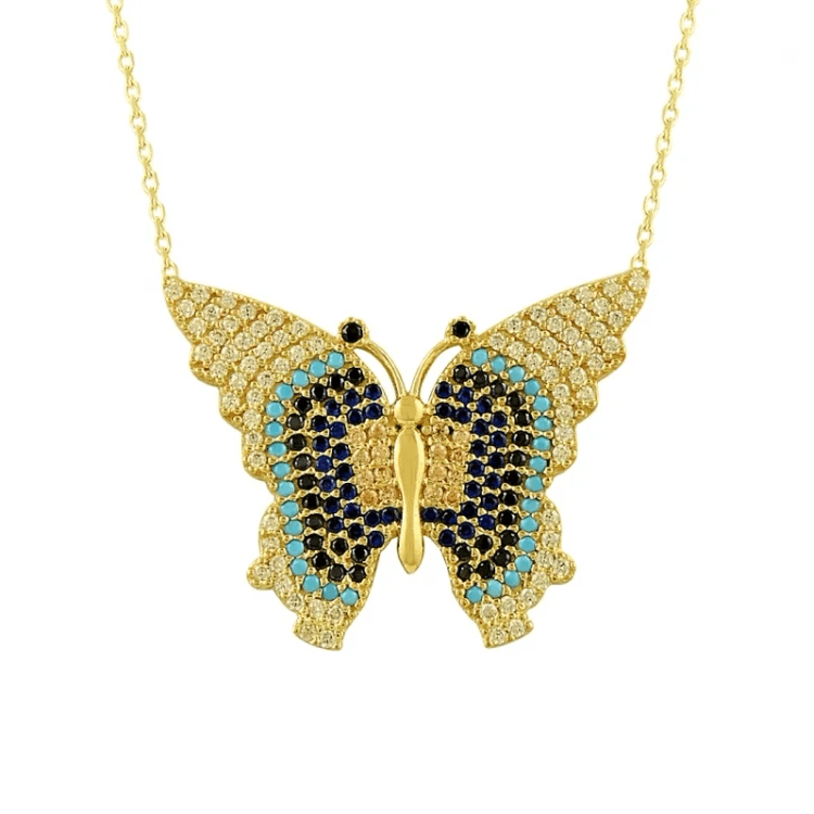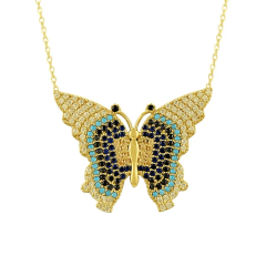 Altın Kolye Modelleri modellerinden Çok Taşlı Kelebek Altın Kolye KLF929 ürünümüz,