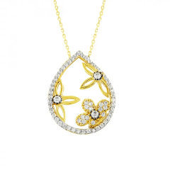 Altın Kolye Modelleri modellerinden Damla İçinde Çiçekler Kolye ürünümüz,