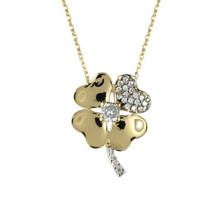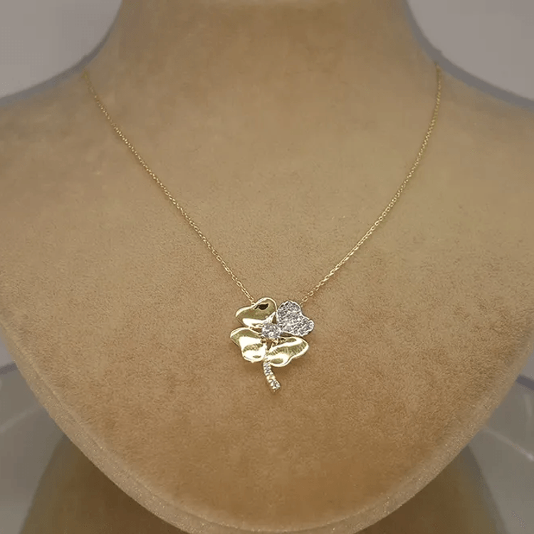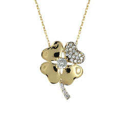 Altın Kolye Modelleri modellerinden Dört Yapraklı Tek Yaprağı Taşlı Yonca Kolye ürünümüz,