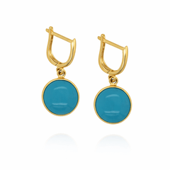 Altın Küpe Modelleri ve Fiyatları modellerinden Firuze Taş Sallantılı Yuvarlak Küpe ürünümüz, 3.80 gr ağırlığında 14 Ayar Altın.
