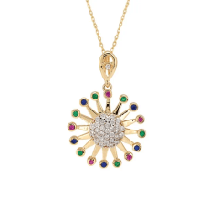Altın Kolye Modelleri modellerinden Güneş Motifli Renkli Taşlı Altın Kolye ürünümüz,