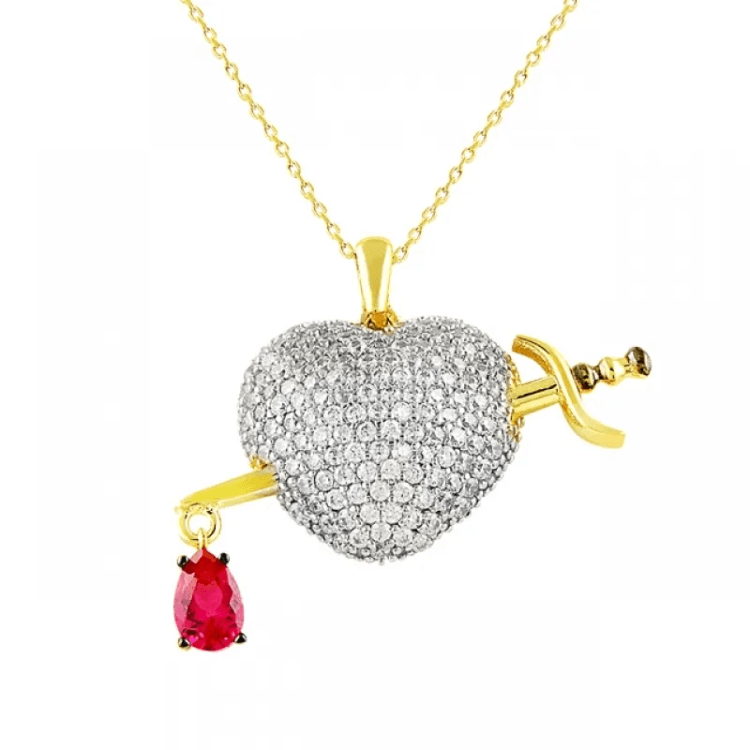 Altın Kolye Modelleri modellerinden Hançerlenmiş Kalp Altın Kolye ürünümüz,