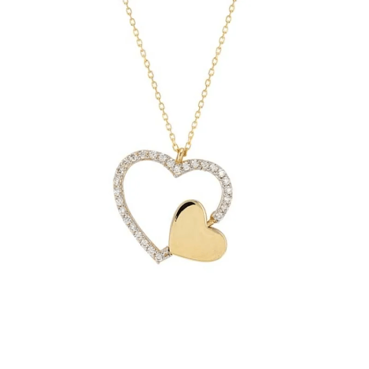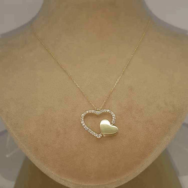 Altın Kolye Modelleri modellerinden İç İçe Kalp Altın Kolyesi ürünümüz,