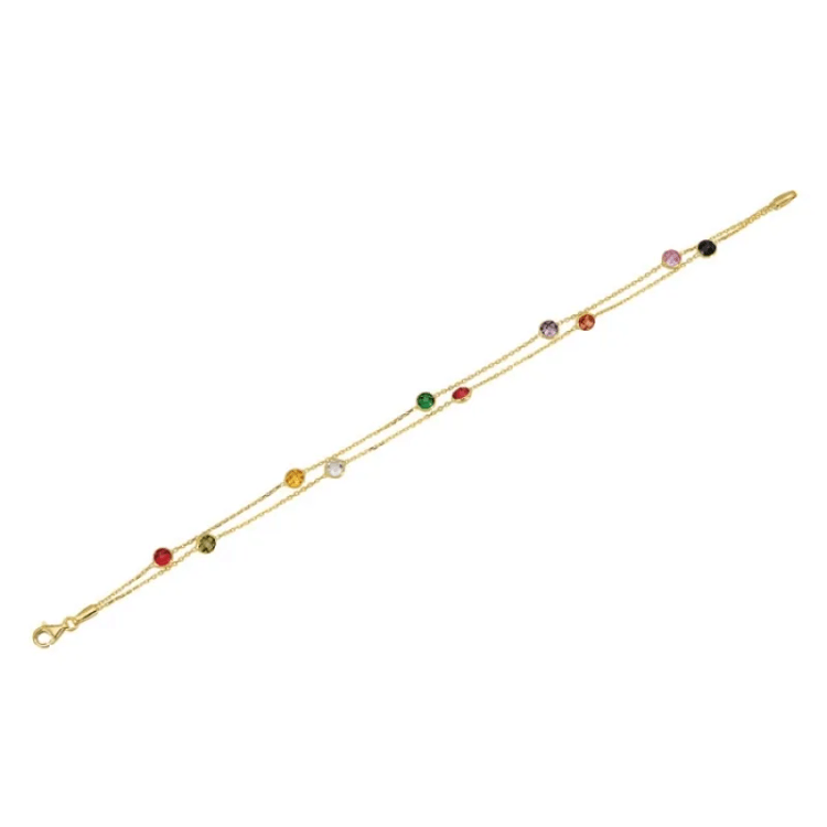 Altın Anneler Günü Hediyeleri modellerinden İki Sıra Çok Renkli Altın Bileklik ürünümüz,
