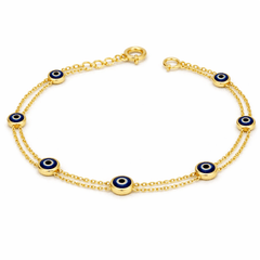Altın Bileklik Modelleri modellerinden İki Sıra Nazar Boncuklu Altın Bileklik ürünümüz,