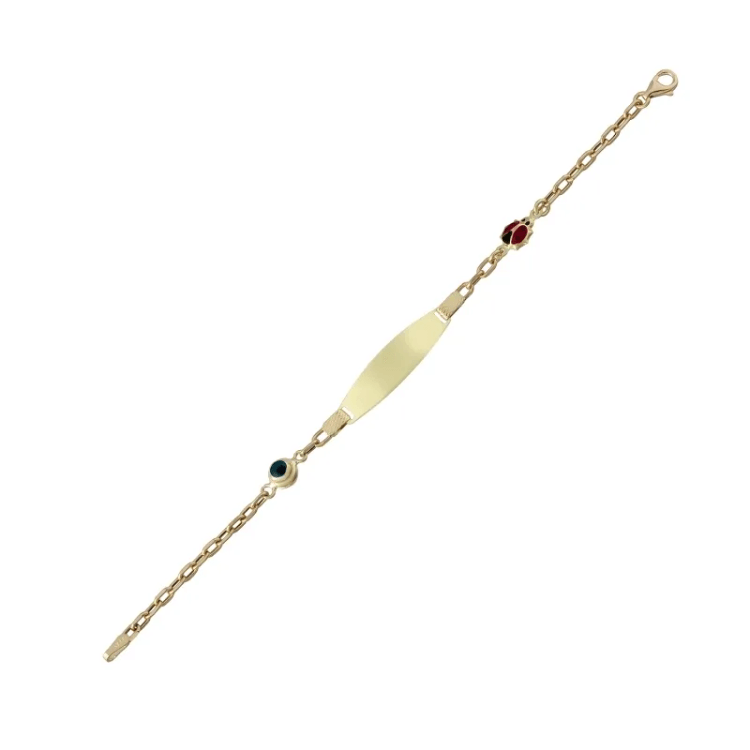 Altın Çocuk Takıları modellerinden İsim Yazılabilen Uğur Böcekli Künye ürünümüz,