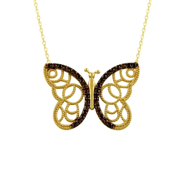 Altın Kolye Modelleri modellerinden Kahverengi Kelebek Desenli Altın Kolye ürünümüz,