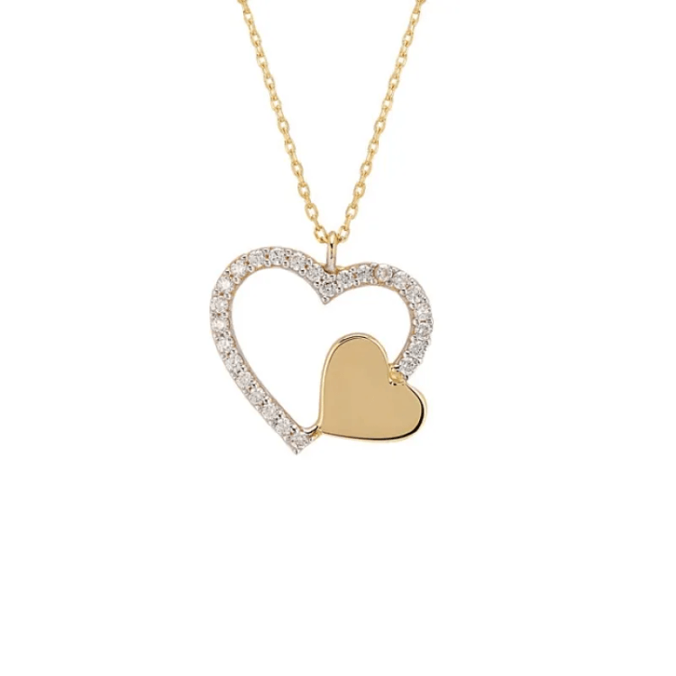 Altın Kolye Modelleri modellerinden Kalp Kenarında Kalpli Kolye ürünümüz,
