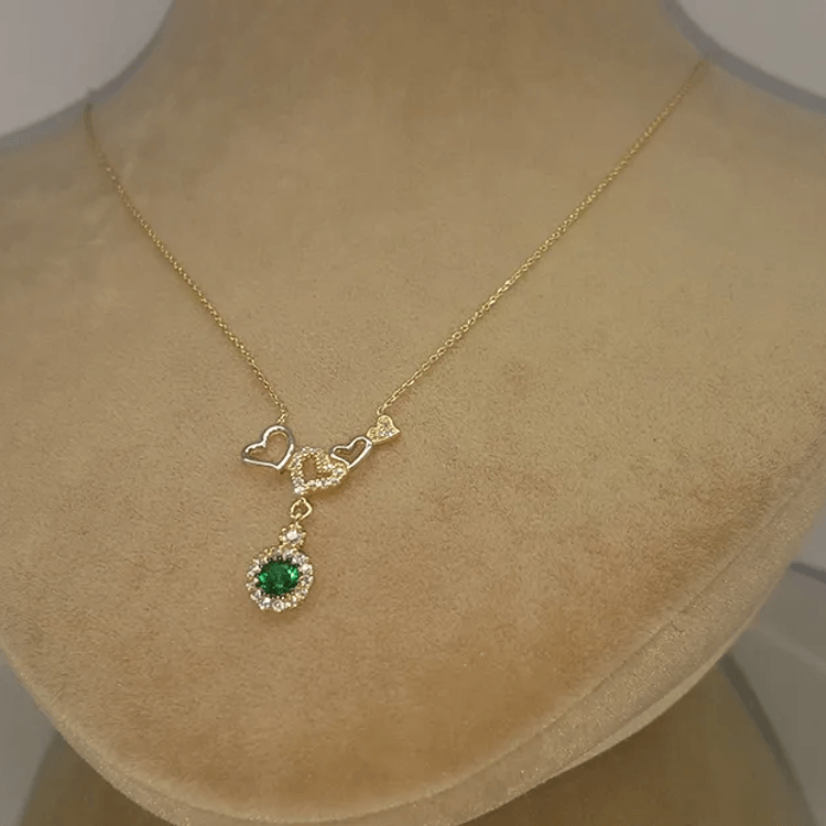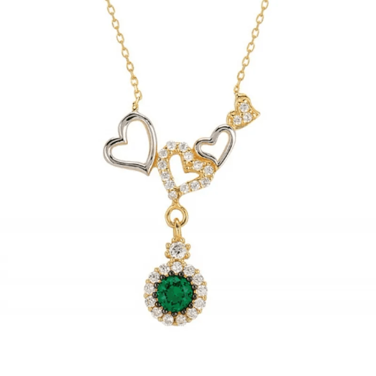 Altın Kolye Modelleri modellerinden Kalplerin Ucunda Yeşil Taşlı Kolye ürünümüz,