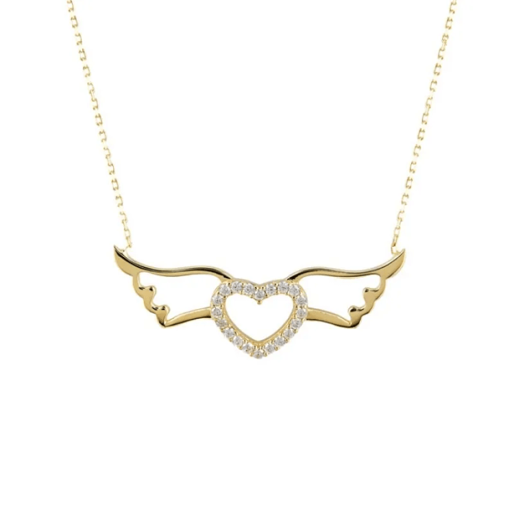 Altın Kolye Modelleri modellerinden Kanatları olan Kalp Kolye ürünümüz,
