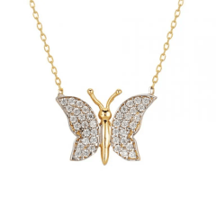 Altın Kolye Modelleri modellerinden Kanatları Taşlı Altın Kelebek ürünümüz,