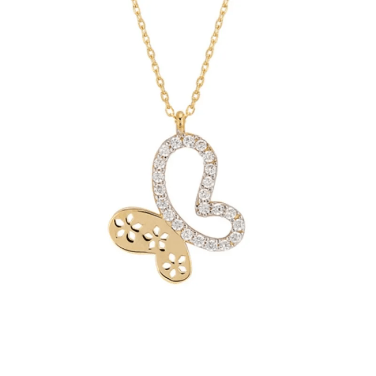 Altın Kolye Modelleri modellerinden Kelebek İçinde Çiçek Motifli Altın Kolye ürünümüz,
