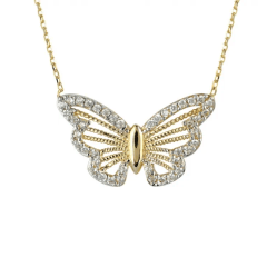 Altın Kolye Modelleri modellerinden Kelebek Motifli Taşlı Altın Kolye ürünümüz,