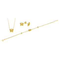 Taşlı Üçlü Set Takım Modelleri modellerinden Kelebekli Altın Bileklik Kolye Küpe Takım ürünümüz,