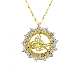 Altın Kolye Modelleri modellerinden Kenarları Taşlı Tuğra Kolye ürünümüz,