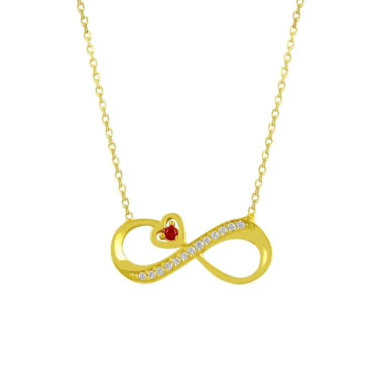 Altın Kolye Modelleri modellerinden Kırmızı Kalp Sonsuzluk Kolyesi ürünümüz,