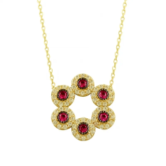 Altın Kolye Modelleri modellerinden Kırmızı Taşlı Daire Altın Kolye KLF894 ürünümüz,