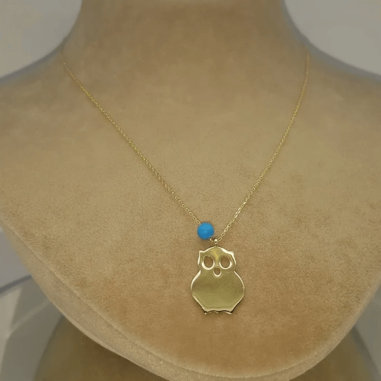 Altın Kolye Modelleri modellerinden Mavi Boncuklu Baykuş Altın Kolye ürünümüz,