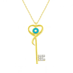 Altın Kolye Modelleri modellerinden Mavi Mineli Anahtar Kolye ürünümüz,