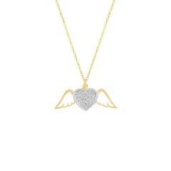 Altın Kolye Modelleri modellerinden Melek Kanatlı Taşlı Kalp ürünümüz,